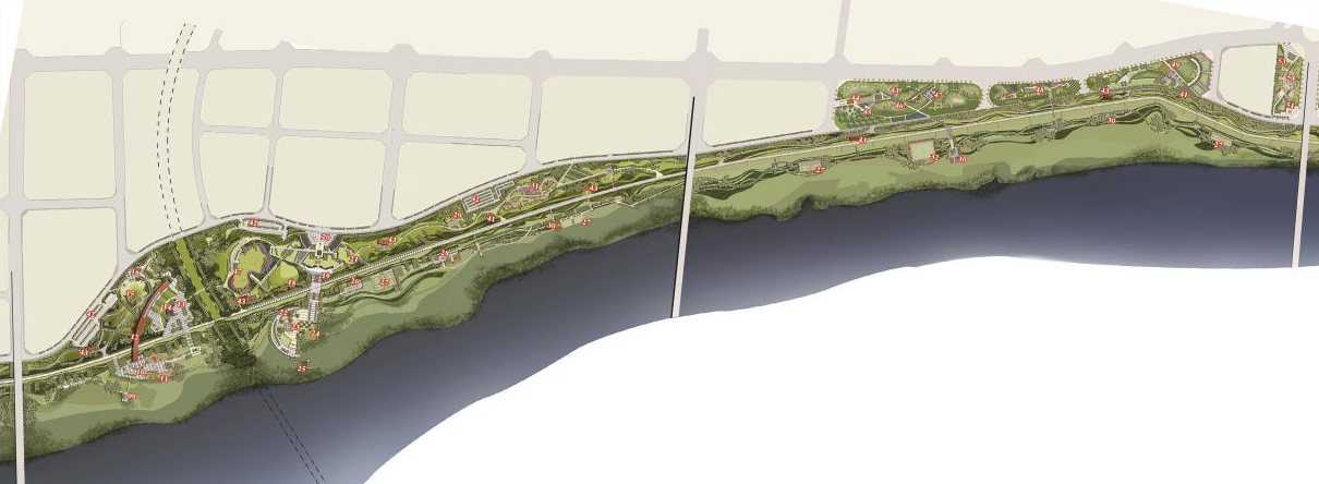 該項(xiàng)目位于淮上大道以南,規(guī)劃建設(shè)A、B、D、E、G、H、J、F、K九個(gè)地塊,全長約6.7公里,面積220萬平方米,約3370.48畝,總投資約4.5億元。分兩期實(shí)施,一期解放路橋-朝陽路橋堤頂以北A、B、D、E、G、H、J7個(gè)地塊綠地景觀,約49萬平方米,二期堤頂以南灘地景觀約141萬平方米及F、K地塊綠地景觀30萬平方米。