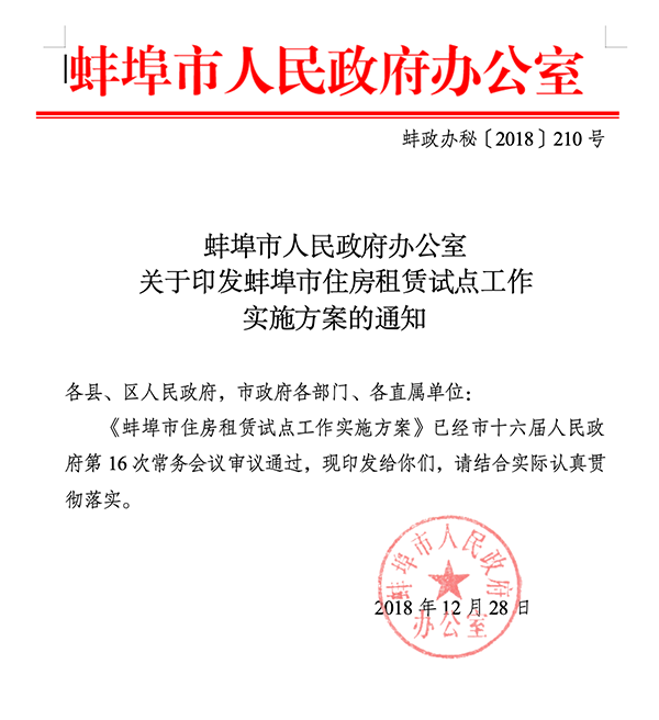 蚌埠市人民政府辦公室關(guān)于印發(fā)蚌埠市住房租賃試點(diǎn)工作實(shí)施方案的通知.doc