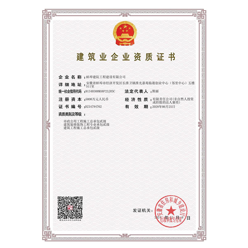 蚌埠建院工程建設(shè)有限公司資質(zhì)證書...