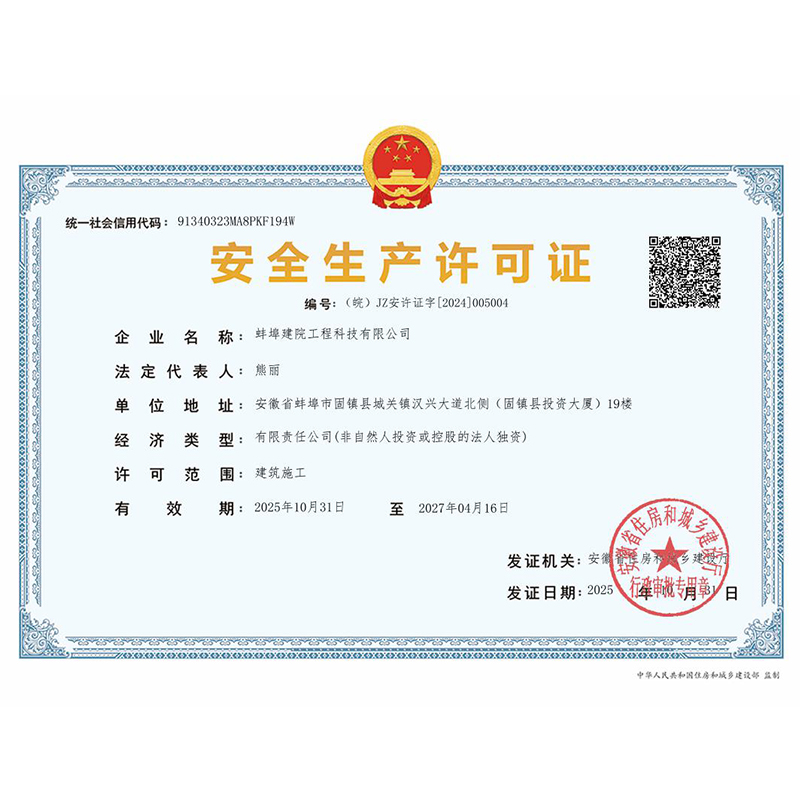 蚌埠建院工程建設(shè)有限公司安許證