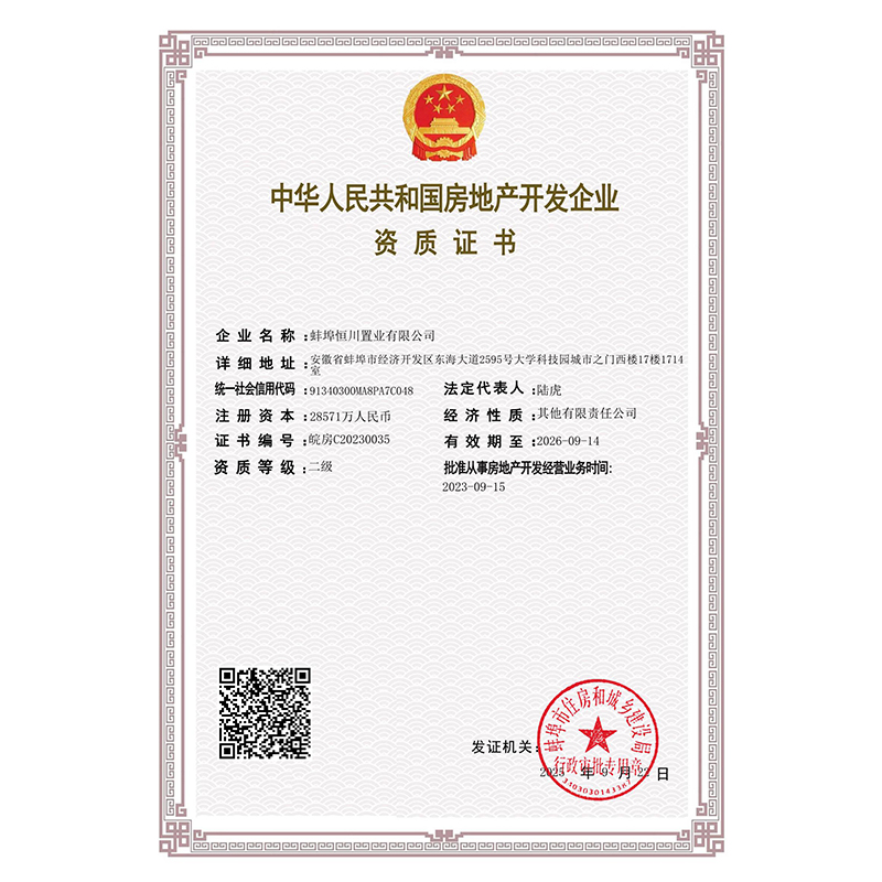 企業(yè)資質(zhì)證書(恒川置業(yè))